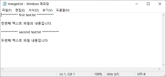 우선, 이전 텍스트 파일 합치기 글에서 작성한 파이썬 코드를 가지고