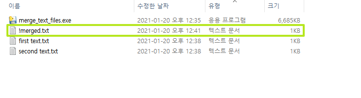 파이썬이 설치되어 있지 않은 환경에서 실행파일과 같은 폴더내의 텍스트 파일을 모두 합쳐주는 프로그램