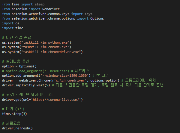 | [파이썬] 코로나 라이브 확진자 데이타 추출하기 (selenium) (0) | 2021.06.11 |